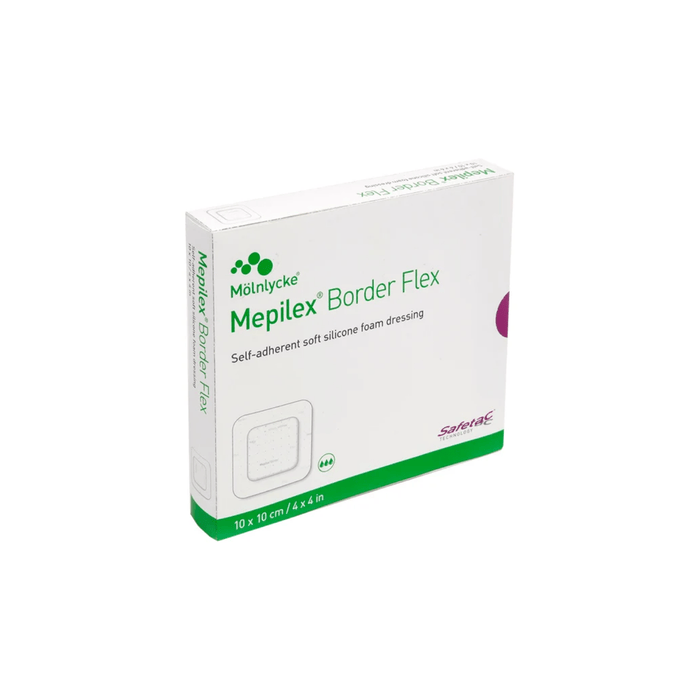 Mepilex Border Flex är ett självhäftande, absorberande förband som upprätthåller en fuktig sårmiljö. Det vattentäta yttre lagret skyddar såret från smuts och bakterier. Förbandet har en unik Safetac®-vidhäftningsteknik som sårkontaktyta. Det minskar smärta för patienten och skador på såret och omgivande hud vid förbandsbyten.