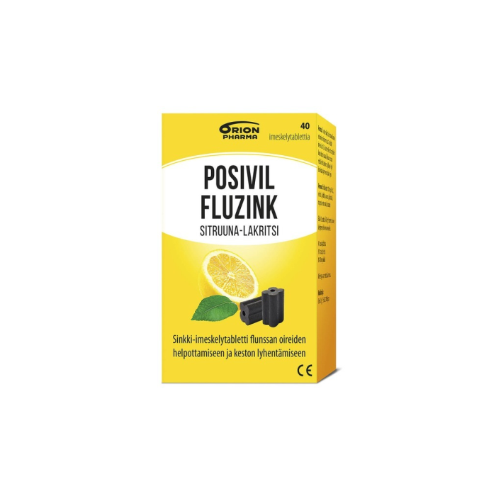 Posivil FluZink sitruuna-lakritsi, veriappelsiini ja mustaherukka -imeskelytabletit ovat imeskeltäviä sinkkiasetaattitabletteja. Ne sopivat flunssan ensioireiden hoitoon ja ohjeen mukaan käytettyinä lyhentävät flunssaoireiden kestoa. Yksi imeskelytabletti sisältää 10 mg sinkkiä- Sopiva vuorokausiannos aikuisille ja yli 12-vuotiaille on 8-10 imeskelytablettia. Nämä imeskellään rauhallisesti 1,5-2 tunnin välein.