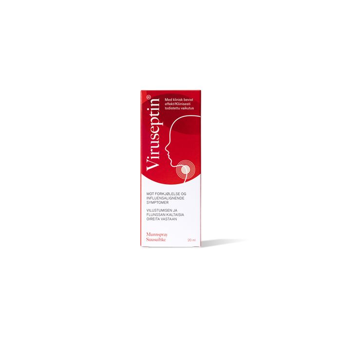 Viruseptin® munsspray kan användas både förebyggande och som behandling vid virusinfektioner i näsa och svalg. Passar för vuxna och barn över 1 år samt för gravida och ammande personer. Förebyggande och långvarig återfuktning av slemhinnorna i mun, hals och svalg. Kontinuerligt vistelse i miljöer med låg luftfuktighet (som uppvärmda eller luftkonditionerade rum, bilar, tåg eller flygplan) kan orsaka uttorkning och irritation av slemhinnorna i mun och hals. Även intensiv fysisk ansträngning, såsom rökning, långvarigt talande eller sjungande, kan orsaka uttorkning av slemhinnorna i mun och hals. Ofta leder detta till hosta, heshet eller halsont. Carragelose® som ingår i Viruseptin®-munsspray stabiliserar slemhinnans fysiologiska fuktfilm i svalget och säkerställer långvarig återfuktning. Börja använda så snart de första symptomen på förkylning eller influensa uppträder. Fortsätt använda tills symptomen har försvunnit.